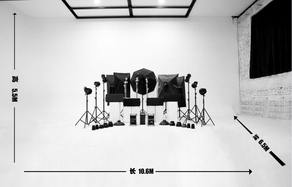 摄影棚拍摄区面积 :10.6m * 6.5m * 5.5m